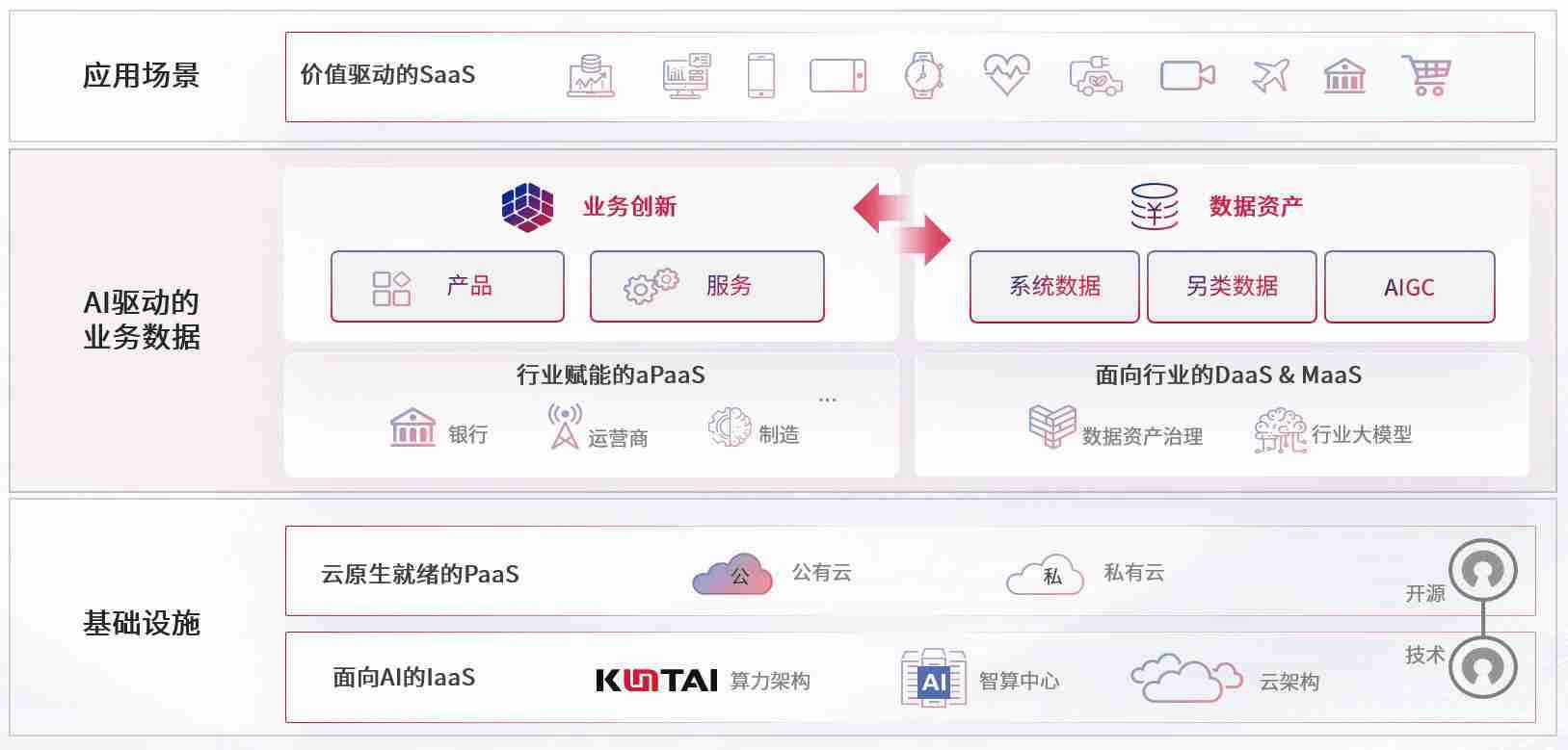 数字时代,,,围绕企业数字化转型的关键要素,,z6尊龙数码开创性的提出数云融合战略和技术体系框架,,着力在云原生、、、、数字原生、、、、AI原生和信创产业上架构产品和服务能力,,,为处在不同数字化转型阶段的快消零售、、、汽车、、、金融、、医疗、、政企、、、、教育、、运营商等行业客户提供泛在的敏捷IT能力和融合的数据驱动能力,,构建跨界融合创新的数字业务场景和新业务模式,,,助力企业级客户建立面向未来的核心能力和竞争优势,,,全面推动社会的数字化、、、智能化转型升级。。