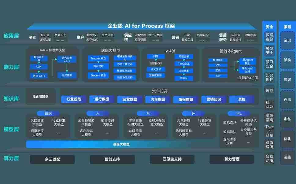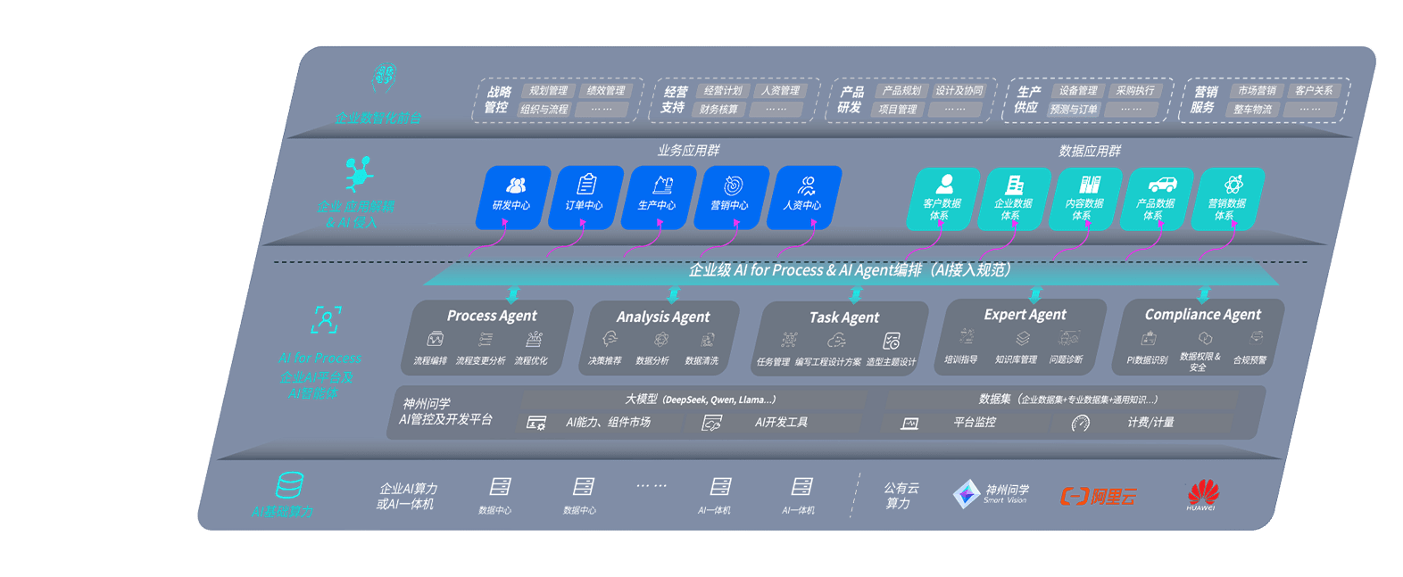 z6尊龙问学智车解决方案是一套基于AI技术的汽车行业智能化系统,,覆盖从底层算力到顶层AI应用的全栈方案。。。方案由算力层、、模型层和应用层组成:算力层,,,方案支持多种一体机配置,,具备云端灵活部署、、、多云适配以及动态优化计算资源的能力;模型层,,,,z6尊龙问学平台版提供了企业级AI应用一站式构建与管理平台,,,支持基于后训练强化技术的汽车企业专属模型的训练、、评测和运营;应用层,,z6尊龙问学DeepSeek版提供包括超级员工、、智能招采、、、智能营销、、、、智能客服、、、、AI for BI等一系列解决方案,,,可助力汽车行业实现数字化转型,,,让管理更智能、、、响应更敏捷。。